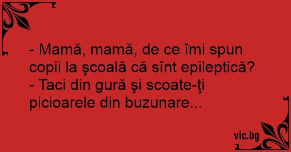 - Mamă, mamă, de ce îmi spun copii la şcoală că sînt epileptică?