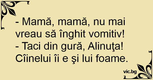 - Mamă, mamă, nu mai vreau să înghit vomitiv!