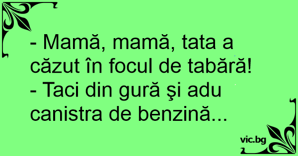 - Mamă, mamă, tata a căzut în focul de tabără!