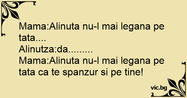 Mama:Alinuta nu-l mai legana pe tata ca te spanzur si pe tine!