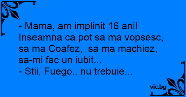 - Mama, am implinit 16 ani!...