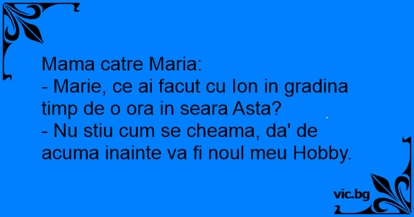 - Marie, ce ai facut cu Ion in gradina timp de o ora in seara Asta?