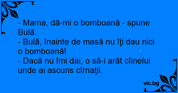 - Mama, dă-mi o bomboană - spune Bulă.