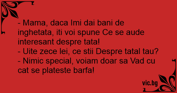 - Mama, daca Imi dai bani de inghetata, iti voi spune Ce se aude interesant despre tata!