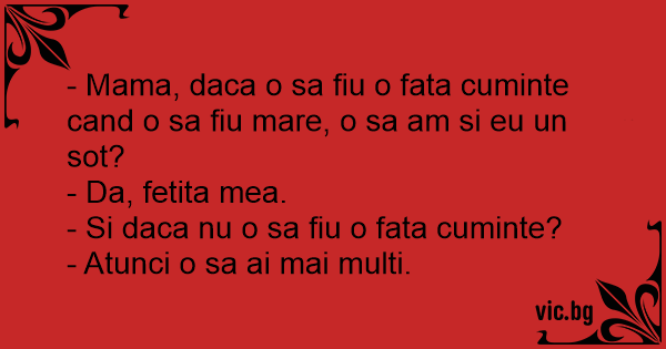 - Mama, daca o sa fiu o fata cuminte cand o sa fiu mare, o sa am si eu un sot?