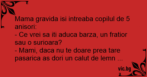 - Ce vrei sa iti aduca barza, un fratior sau o surioara?