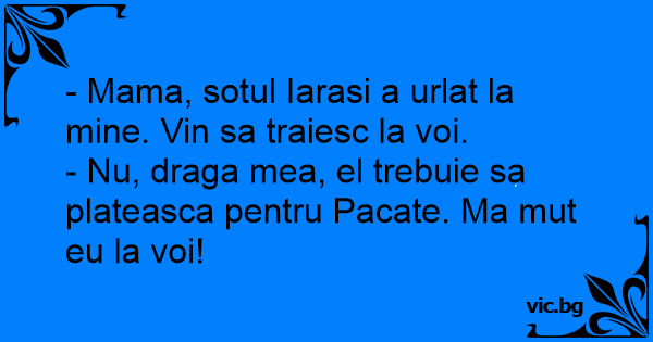 - Mama, sotul Iarasi a urlat la mine. Vin sa traiesc la voi.