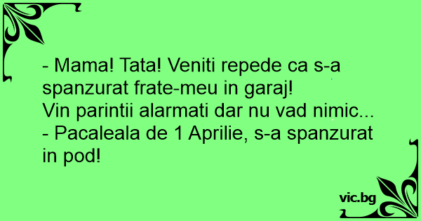 - Mama! Tata! Veniti repede ca s-a spanzurat frate-meu in garaj!