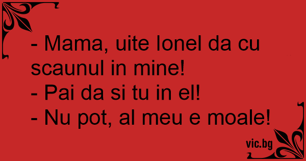- Mama, uite Ionel da cu scaunul in mine!