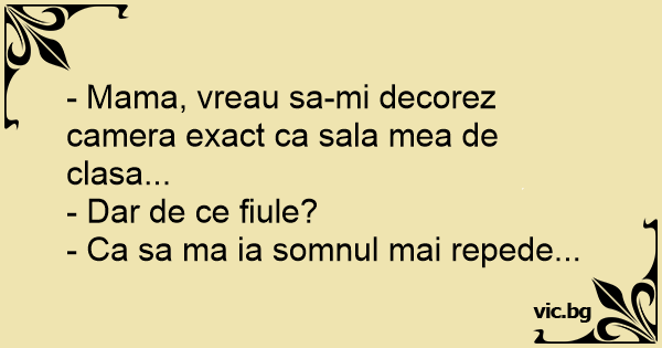 - Mama, vreau sa-mi decorez camera exact ca sala mea de clasa...