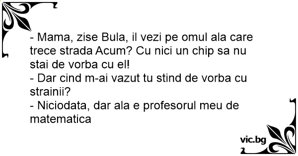 - Mama, zise Bula, il vezi pe omul ala care trece strada Acum? Cu nici un chip sa nu stai de vorba cu el!