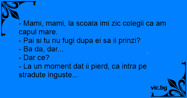 - Mami, mami, la scoala imi zic colegii ca am capul mare.