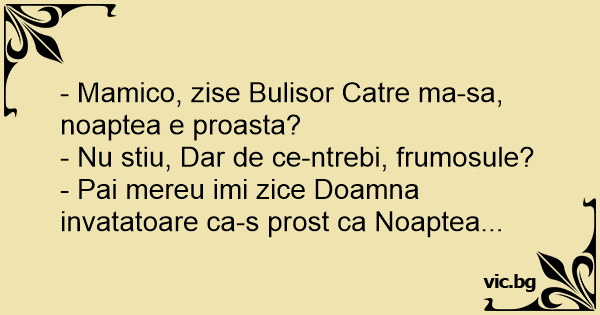 - Mamico, zise Bulisor Catre ma-sa, noaptea e proasta?