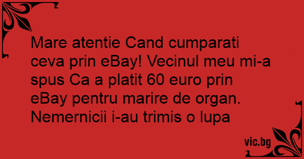 Mare atentie Cand cumparati ceva prin eBay! Vecinul meu mi-a spus Ca a platit 60 euro prin eBay pentru marire de оrgаn.