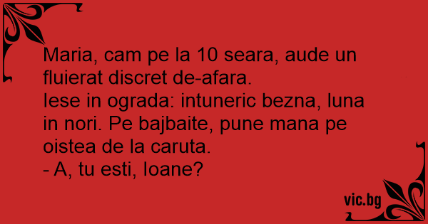Maria, cam pe la 10 seara, aude un fluierat discret de-afara.