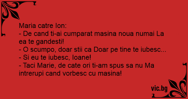 - Taci Marie, de cate ori ti-am spus sa nu Ma intrerupi cand vorbesc cu masina!