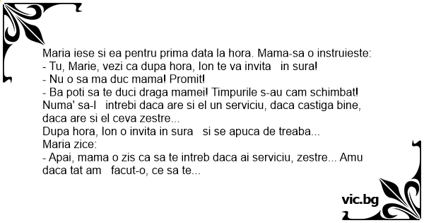 - Tu, Marie, vezi ca dupa hоrа, Ion te va invita in sura!