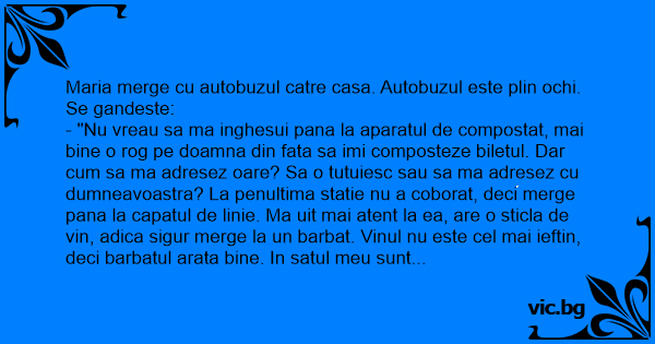 Maria merge cu autobuzul catre casa. Autobuzul este plin ochi. Se gandeste: