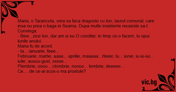 - Bine , zice Ion, dar am si eu O conditie: in timp ce-o facem, tu spui lunile anului.