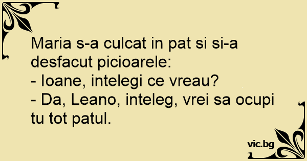 - Da, Leano, inteleg, vrei sa ocupi tu tot patul.