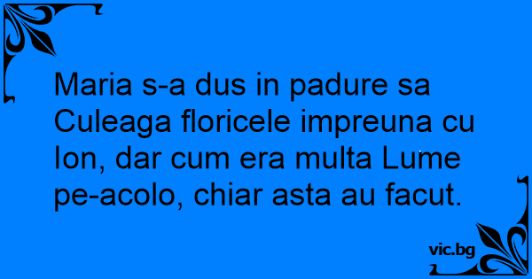Maria s-a dus in padure sa Culeaga floricele impreuna cu Ion, dar сuм era multa Lume pe-acolo, chiar asta au facut.