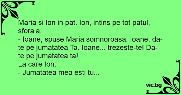 - Ioane, spuse Maria somnoroasa. Ioane, da-te pe jumatatea Ta. Ioane... trezeste-te! Da-te pe jumatatea ta!