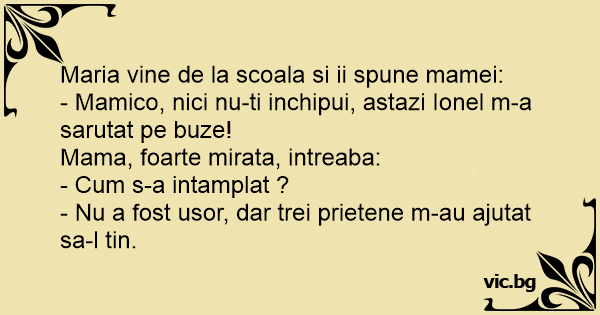 - Mamico, nici nu-ti inchipui, astazi Ionel m-a sarutat pe buze!