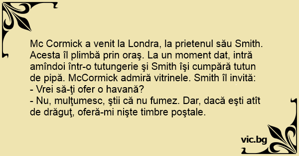 - Nu, mulţumesc, ştii că nu fumez. Dar, dacă eşti atît de drăguţ, oferă-mi nişte timbre poştale.