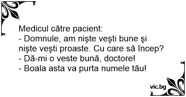 - Dă-mi o veste bună, doctore!