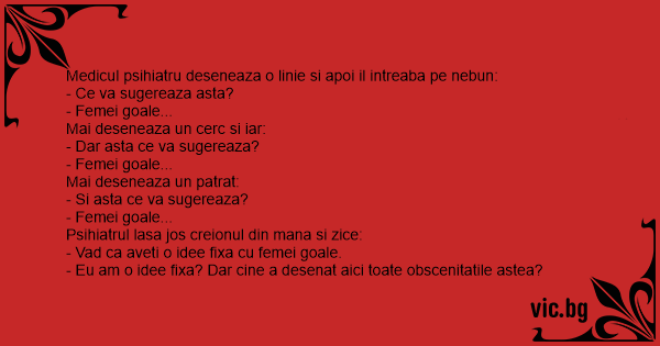 Medicul psihiatru deseneaza o linie si apoi il intreaba pe nebun: