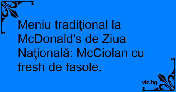 Meniu tradiţional la McDonald's de Ziua Naţională: McCiolan cu fresh de fasole.