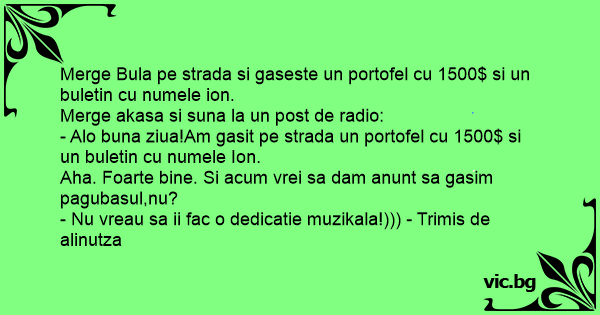 Merge Bula pe strada si gaseste un portofel cu 1500$ si un buletin cu numele ion.