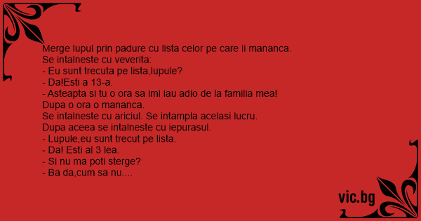 Merge lupul prin padure cu lista celor pe care ii mananca.