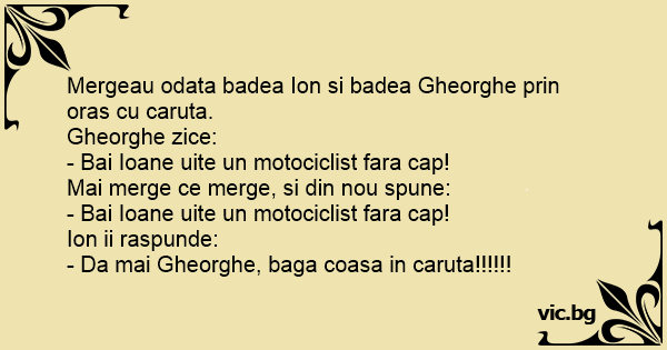- Bai Ioane uite un motociclist fara cap!