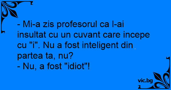 - Mi-a zis profesorul ca l-ai insultat cu un cuvant care incepe cu "i". Nu a fost inteligent din partea ta, nu?