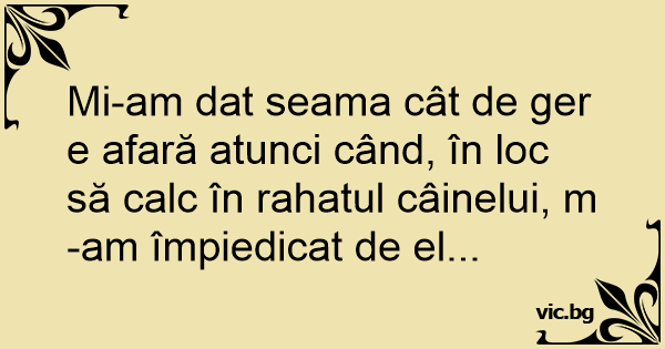 Mi-am dat seama cât de ger e afară atunci când, în loc să calc în rahatul câinelui, m-am împiedicat de el...