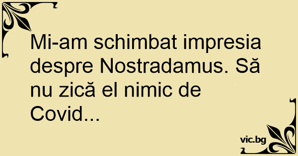 Mi-am schimbat impresia despre Nostradamus. Să nu zică el nimic de Covid...