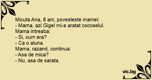 - Mama, azi Gigel mi-a aratat cocoselul.