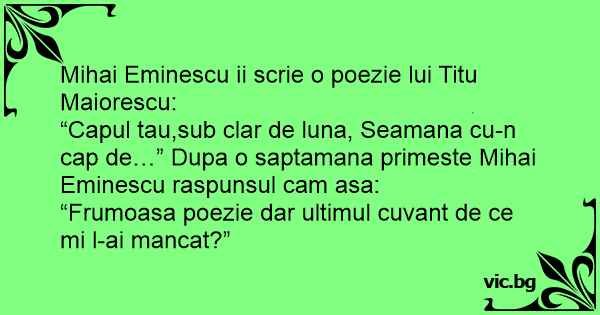 “Capul tau,sub clar de luna, Seamana cu-n cap de…” Dupa o saptamana primeste Mihai Eminescu raspunsul cam asa:
