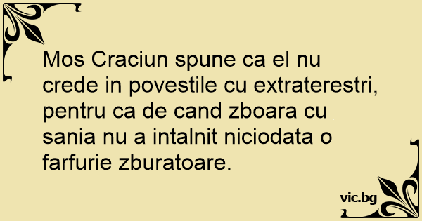 Mos Craciun spune ca el nu crede in povestile cu extraterestri, pentru ca de cand zboara cu sania nu a intalnit niciodata o farfurie zburatoare.