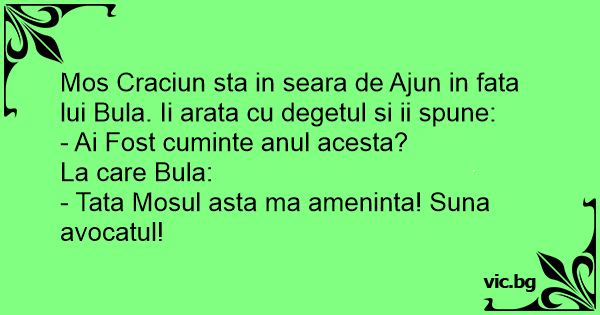 Mos Craciun sta in seara de Ajun in fata lui Bula. Ii arata cu degetul si ii spune: