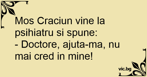 Mos Craciun vine la psihiatru si spune: