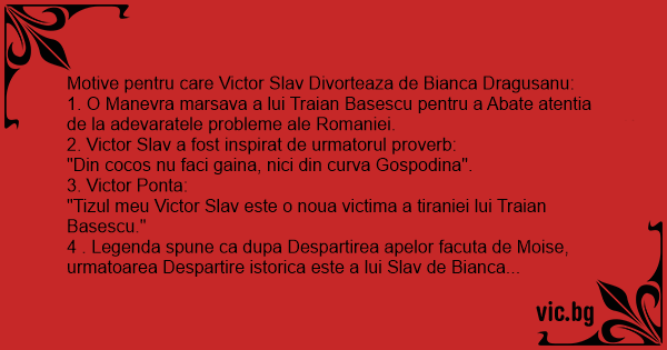 Motive pentru care Victor Slav Divorteaza de Bianca Dragusanu: