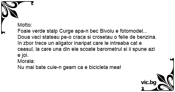 Foaie verde stalp Curge apa-n bec Bivolu e fotomodel...