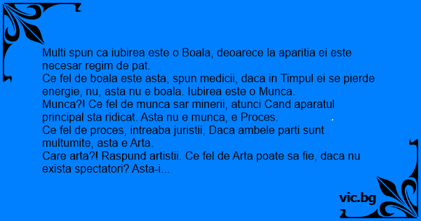 Ce fel de boala este asta, spun medicii, daca in Timpul ei se pierde energie, nu, asta nu e boala. Iubirea este o Munca.