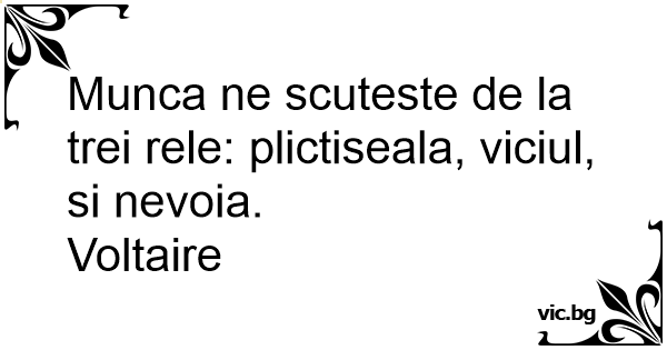 Munca ne scuteste de la trei rele: plictiseala, viciul, si nevoia.