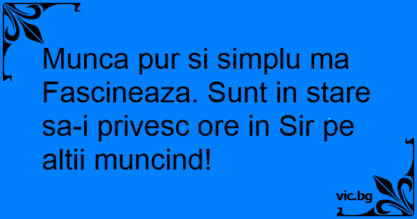 Munca pur si simplu ma Fascineaza. Sunt in stare sa-i privesc ore in Sir pe altii muncind!