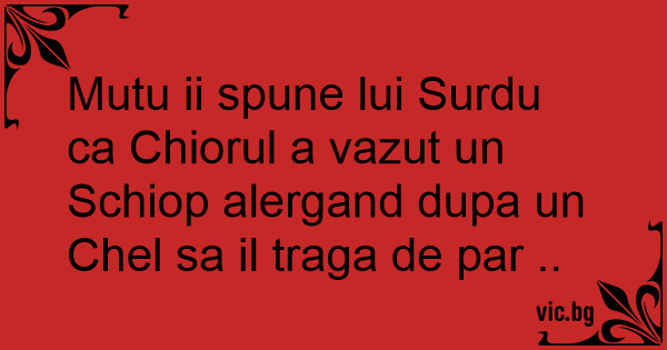 Mutu ii spune lui Surdu ca Chiorul a vazut un Schiop alergand dupa un Chel sa il traga de par ..