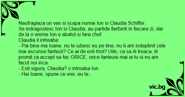 Naufragiaza un vas si scapa numai Ion si Claudia Schiffer.