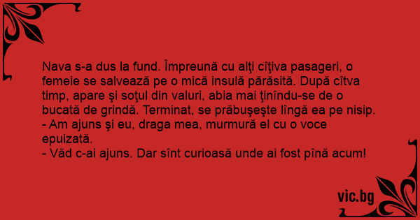 - Văd c-ai ajuns. Dar sînt curioasă unde ai fost pînă acum!